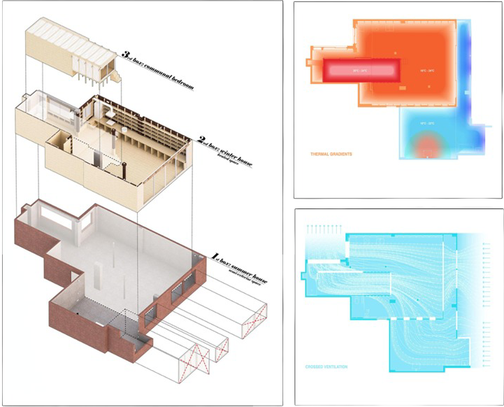 Il faut également noter que les intérieurs étaient autrefois conçus comme une matrice de pièces interconnectées, des espaces en enfilade sans couloir intermédiaire, produisant des cascades de température.